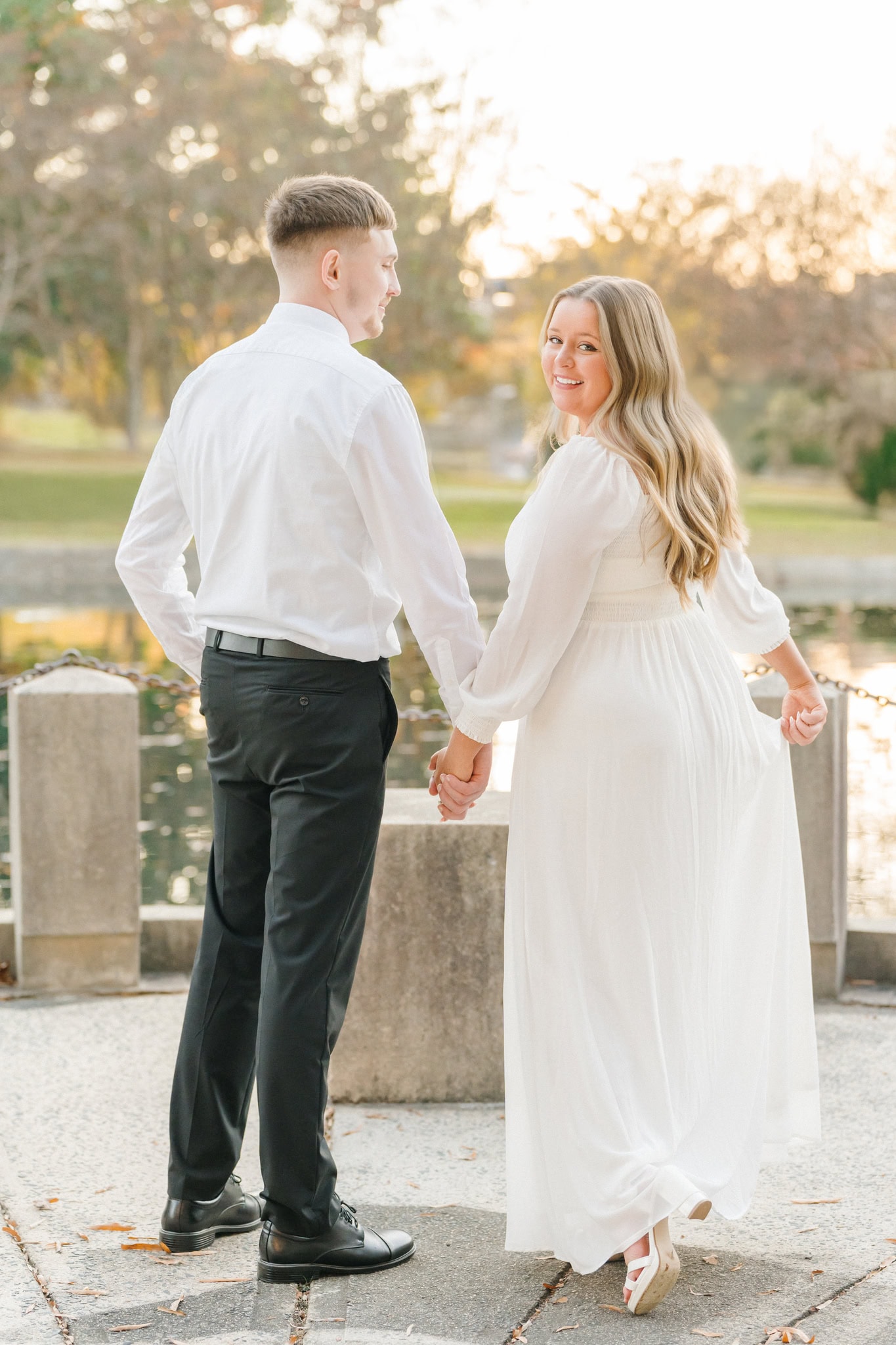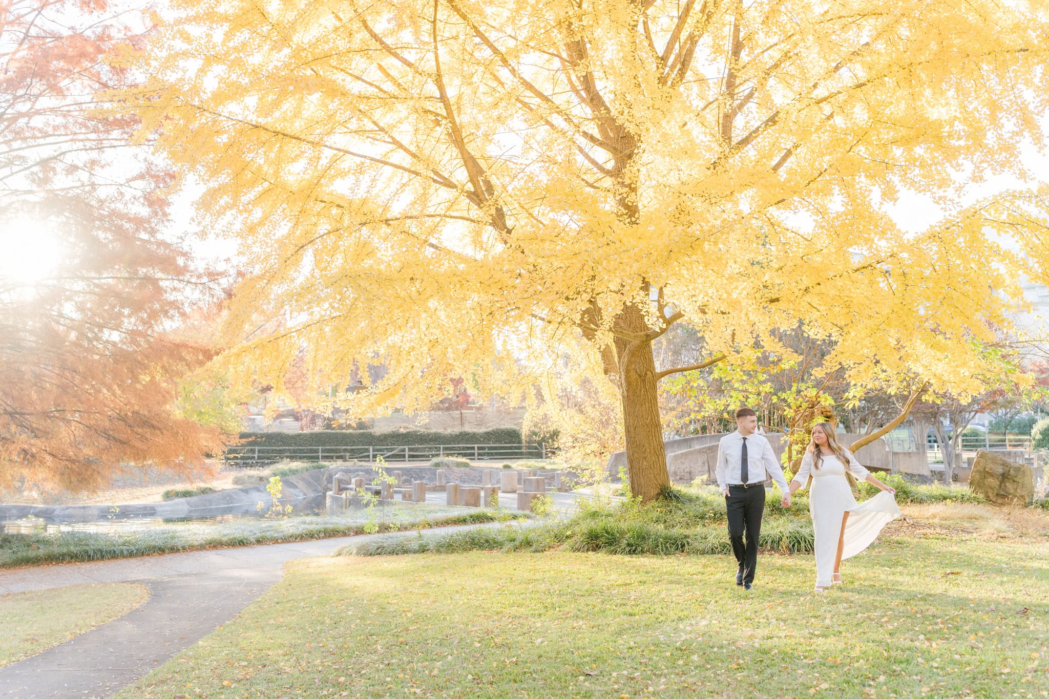 They spent the afternoon wandering under the yellow ginkgo tree and along the park’s winding paths, letting the moment unfold naturally. Abby and Jensen have this effortless ease together, like they’ve known each other forever and it feels like they’re still in that sweet early chapter where every laugh feels new and every look is full of meaning.