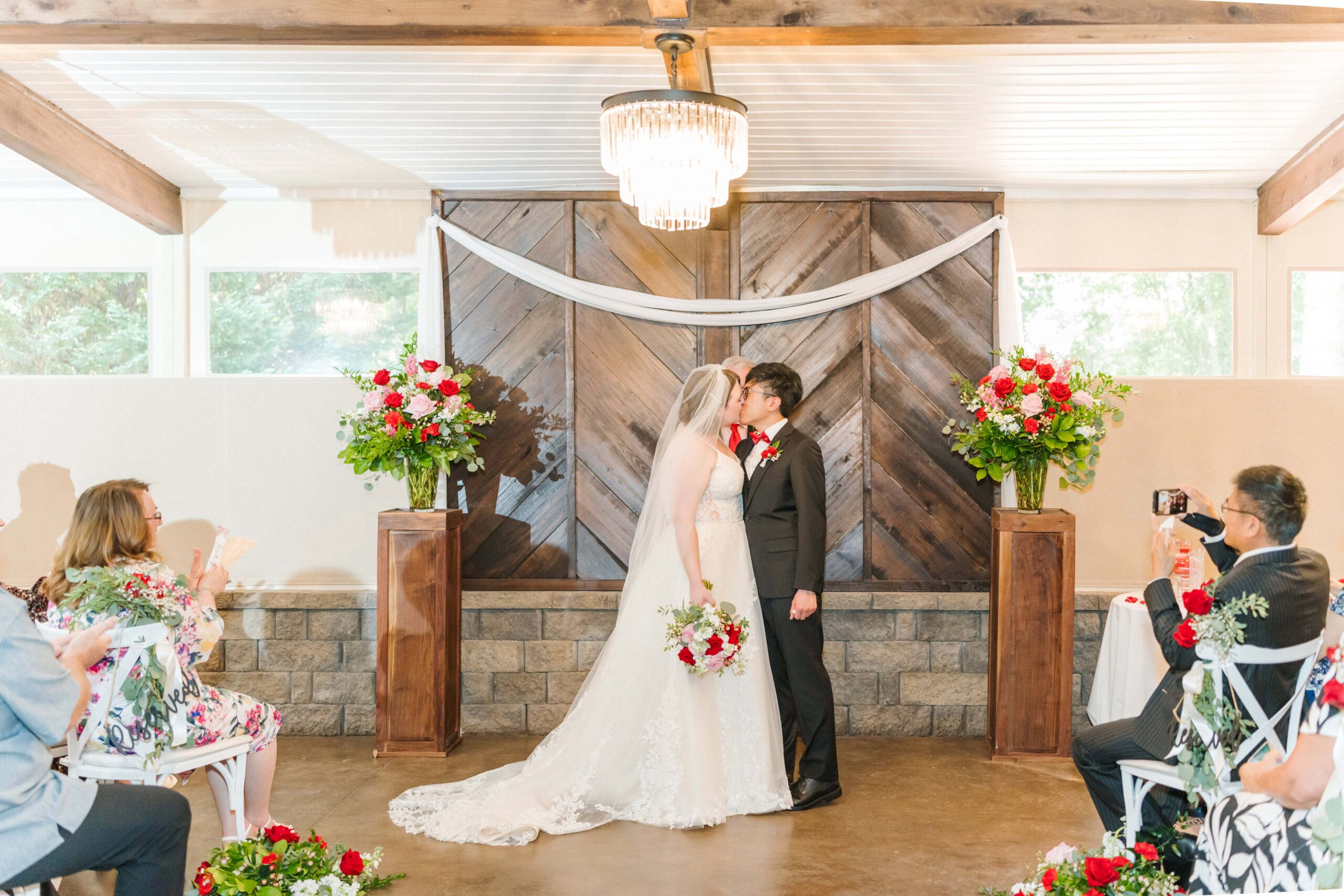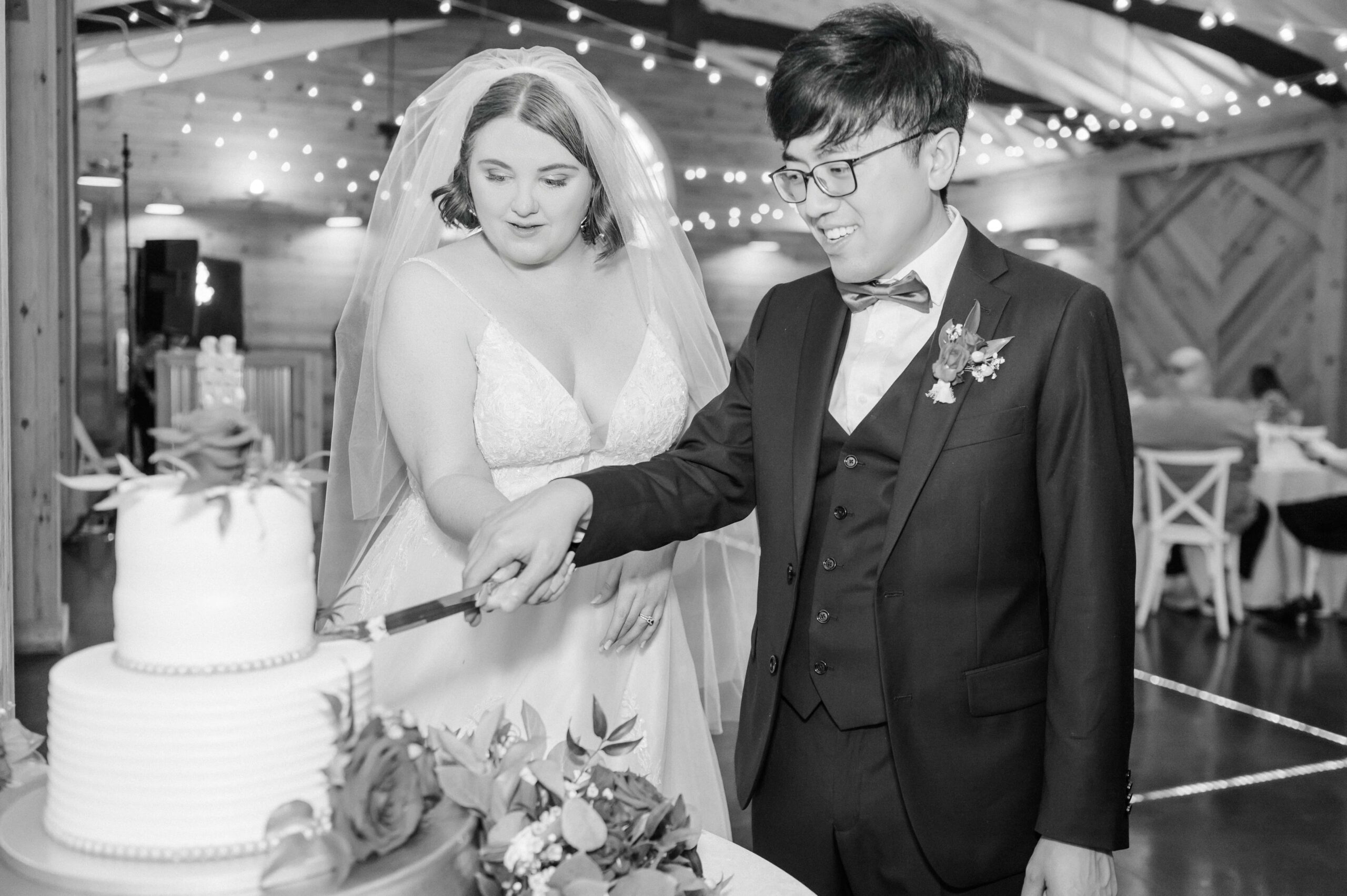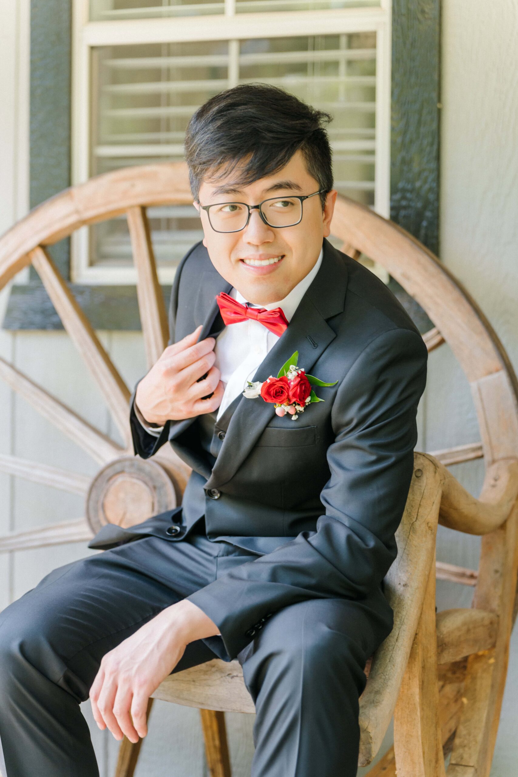 The ceremony took place in the barn of Alexander Homestead to beat the outside heat and keep those red florals from Mint Hill Flower Market blooming fresh. Red, a symbol of luck, joy, and prosperity in Chinese weddings, was woven throughout the day not only in their flowers, but even in things like their decadent red velvet cake by Sweet It Is. It was such a meaningful way to honor Yan’s heritage while creating a truly personalized celebration.
