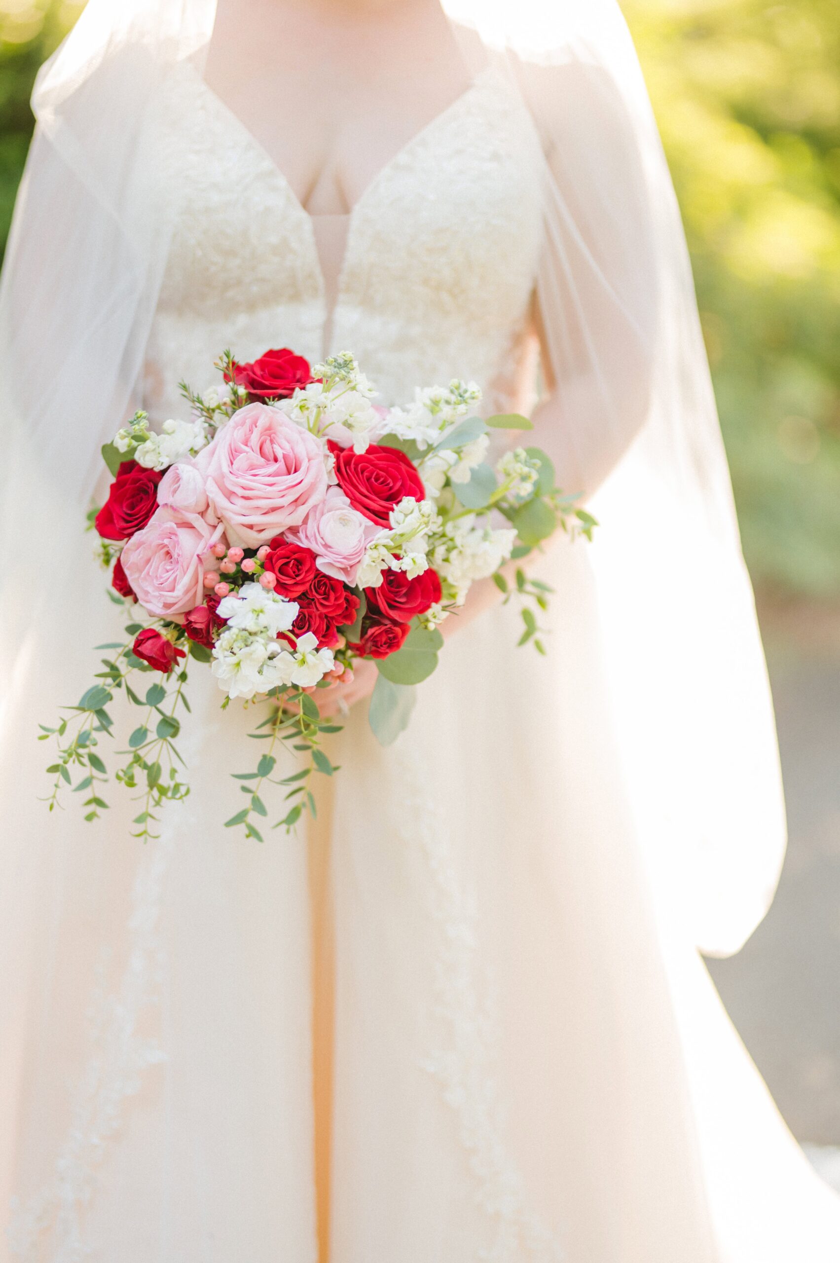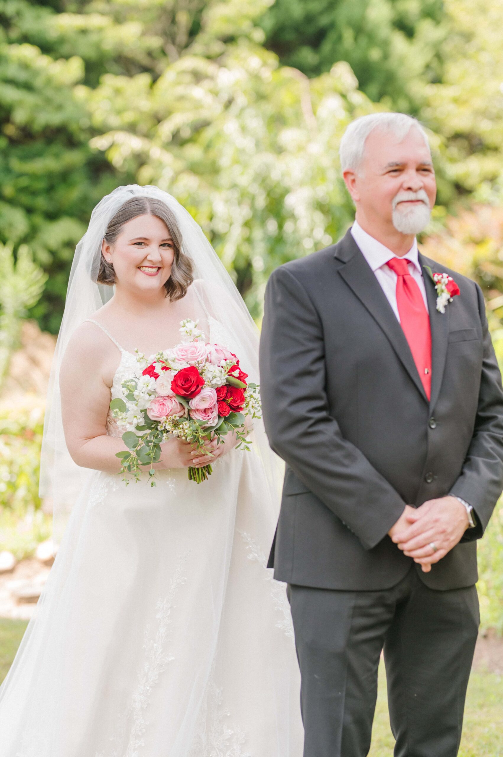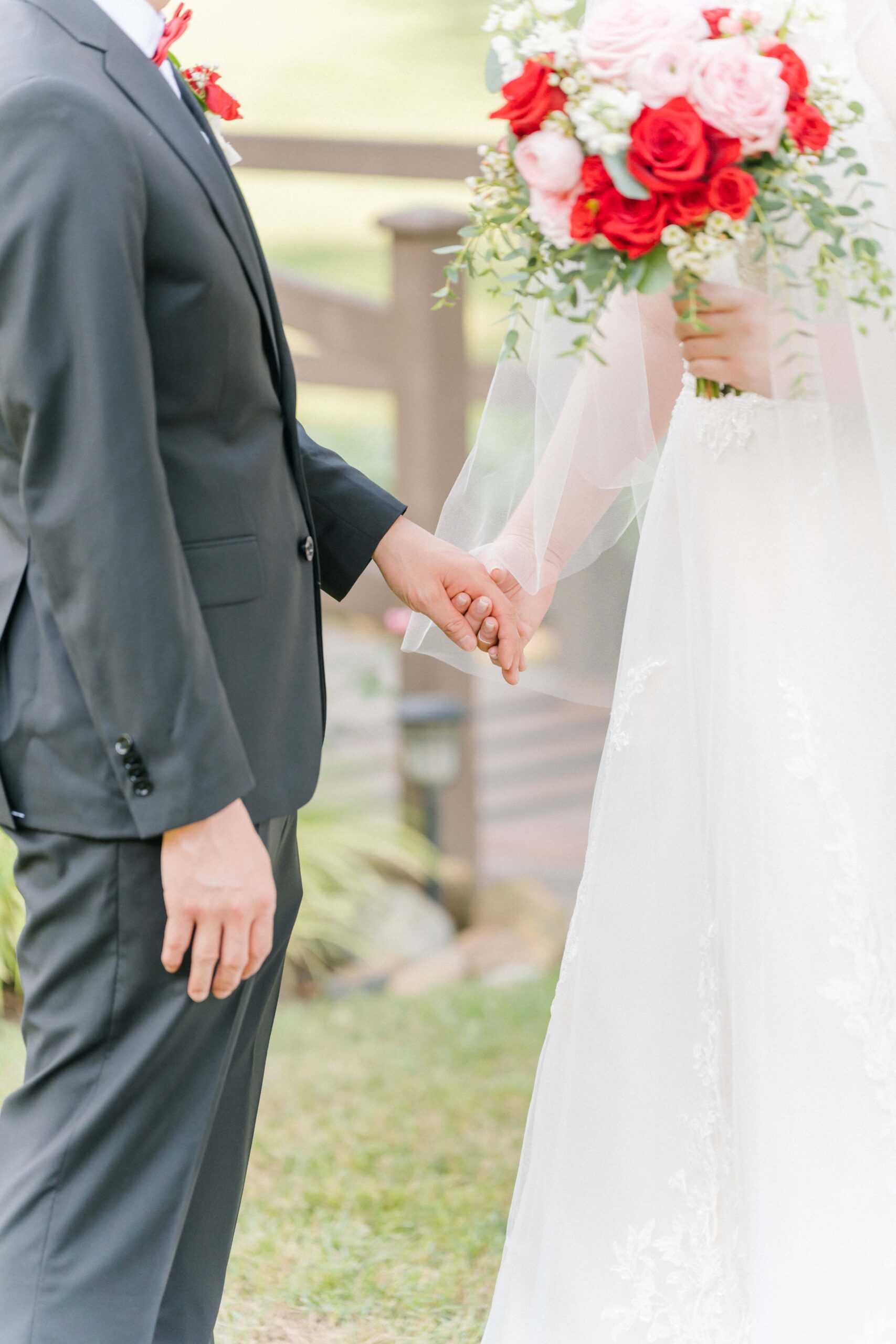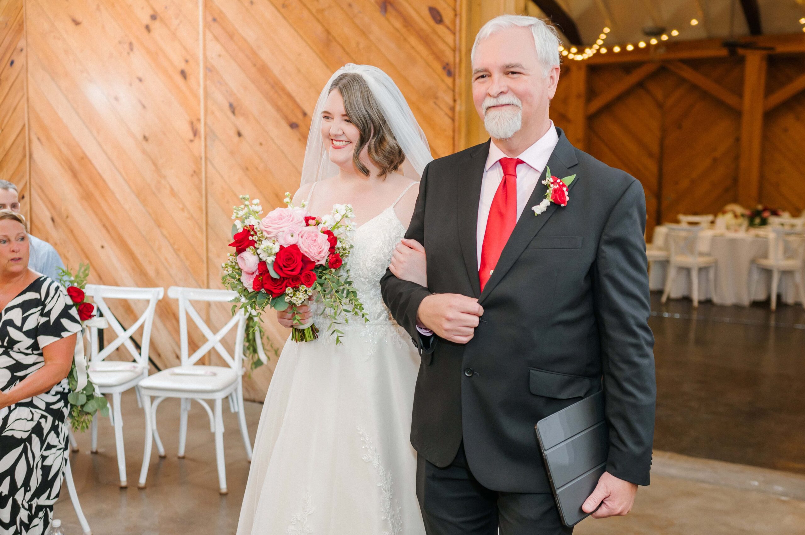 The ceremony took place in the barn of Alexander Homestead to beat the outside heat and keep those red florals from Mint Hill Flower Market blooming fresh. Red, a symbol of luck, joy, and prosperity in Chinese weddings, was woven throughout the day not only in their flowers, but even in things like their decadent red velvet cake by Sweet It Is. It was such a meaningful way to honor Yan’s heritage while creating a truly personalized celebration.
